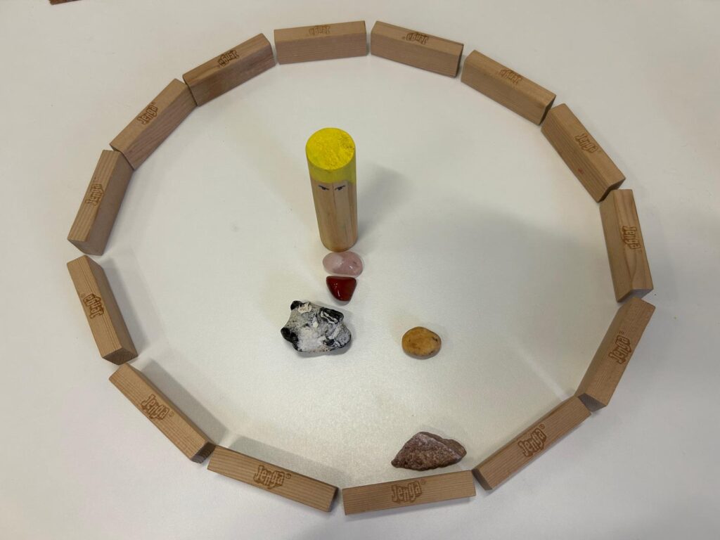 We maken de ik-grens visueel met behulp van houten blokjes. Door het visueel te maken komt een proces van bewustwording van jouw overtuigingen en patronen op gang. Met gerichte oefeningen kun je jouw ik-grensbewustzijn versterken. Dit helpt je om beter te herkennen wanneer je over je eigen grenzen heen gaat en hoe je tijdig bij kunt sturen. Hierdoor creëer je niet alleen meer balans in je eigen leven, maar geef je ook een gezond voorbeeld aan je kinderen en anderen om je heen.